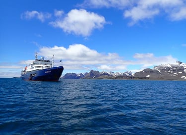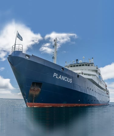 At Ushuaia, Argentina, on February 16, we will board our ship, Plancius, and get settled in. We depart that afternoon for the Falkland Islands as we make our way to Antarctica. The ice-strengthened motor vessel Plancius is 293 feet long, displaces 3,211 tons, and carries a maximum of 108 passengers. The vessel is Dutch; the crew is Russian; the galley staff is Filipino. All meals aboard are included in the trip.