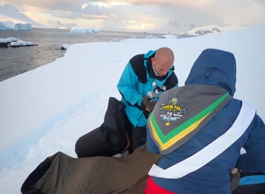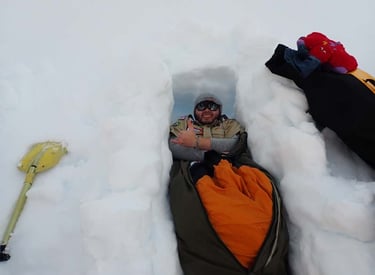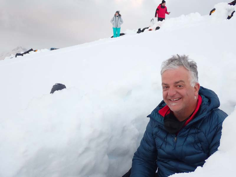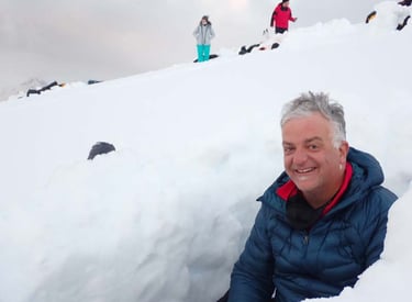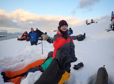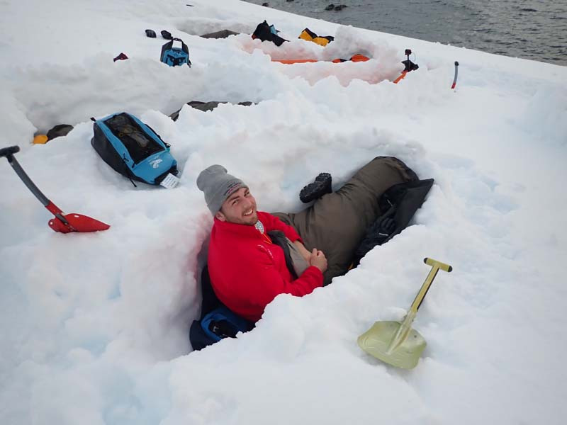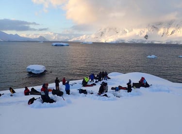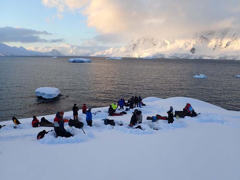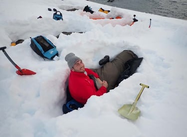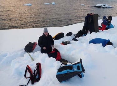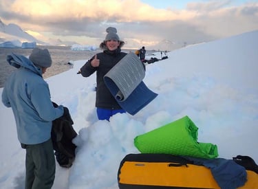 Camping on the Antarctic Peninsula is an adventure like no other — an unforgettable night spent in the most remote and pristine environment on Earth. With no tents, just bivy sacks and thermal sleeping bags, we’ll dig into the snow and settle in under the polar sky, surrounded by a silence so complete it feels otherworldly. Icebergs drift silently offshore, penguins may call in the distance, and if we’re lucky, we might hear the deep, echoing crack of a calving glacier. There are no lights, no buildings, no distractions — just us, the snow, and the vastness of Antarctica. It’s a raw, humbling, and deeply moving experience that few ever get to have, and one we’ll never forget.