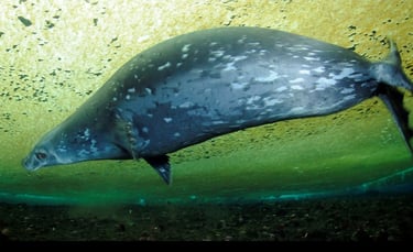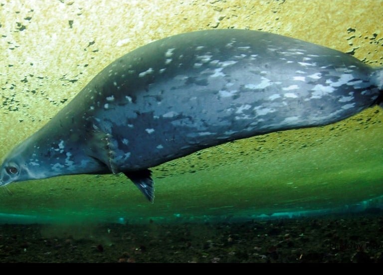Sounds of extraterrestrial ray guns resonate through the water. I love this noise; it’s the perfect background music for the alien environment in which I’m swimming. The eerie reverberations are made by Weddell seals as they echo-locate their position beneath the ice. Their ability to navigate under the ice, even in the complete darkness of the Antarctic winter, is astounding. Diving to depths greater than 2,000 feet, they can return to the same small hole from which they began their dive. They generally gnaw the ice to keep their breathing holes open during the winter, but they often use the holes we’ve drilled to grab a few breaths. We frequently have to wait our turn to exit the water while a 1,350-pound seal uses our hole, blocking our egress.