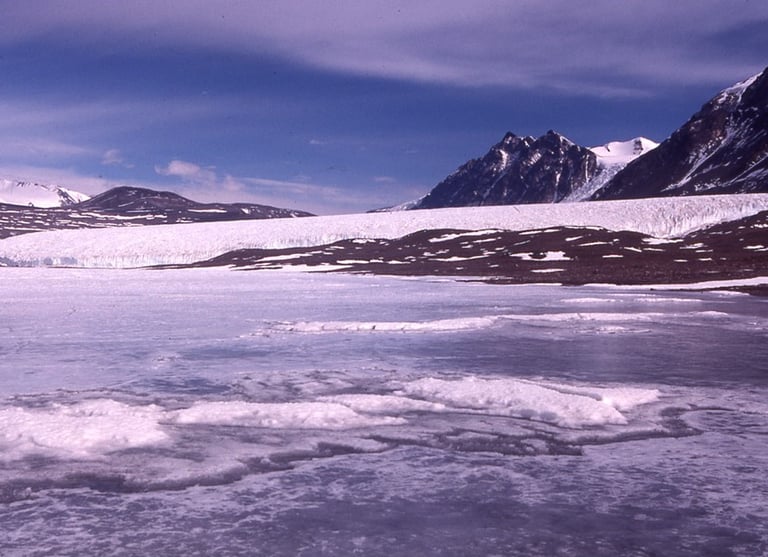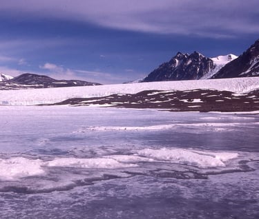Everything is a shade of blue. The cerulean ice exhibits a multitude of hues as the 24-hour sunlight filters down through varying thicknesses of snow and solid ice. Azure cracks shine in the gloom where the ice plates meet.