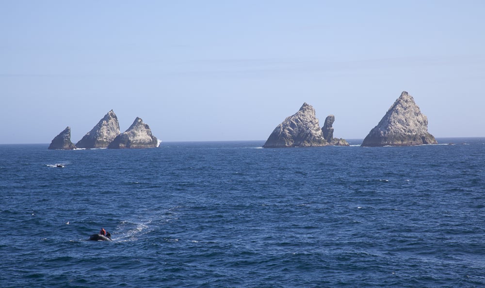 In addition, for the scuba divers aboard, we will attempt to dive the rocks. There is no record of anyone ever having been scuba diving here before, so this will be truly a record-setting trip. Diving at Shag Rocks requires experience and preparation due to the cold temperatures, strong currents, and unpredictable weather. Expedition leaders and dive supervisors will assess both conditions and demonstrated dive skills before allowing any given individual to dive. There are no guarantees that, even if you are a diver on the trip, the weather and sea state will allow diving, or that you will be permitted to dive here.